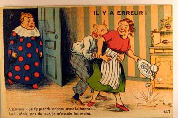 Lot #1592. View Larger | Rotate French Comic # 417, “Il Y A Erreur”, Wife Catches Husband w/ Maid”, color DB VF