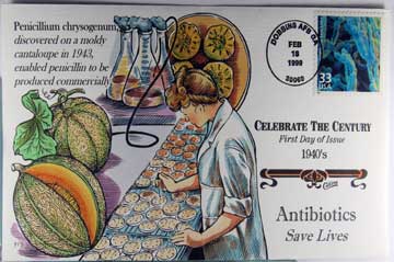 Lot #1604. View Larger | Rotate Hand-Painted First Day Cover by Collins, “Antibiotics Save Lives”, 1999 VF