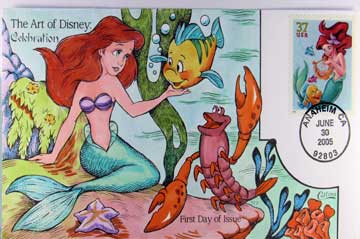 Lot #1577. View Larger | Rotate Hand-Painted First Day Cover by Collins, Disney, 2005 VF