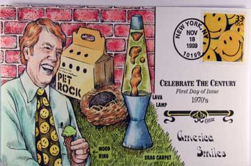 Lot #1601. View Larger | Rotate Hand-Painted First Day Cover by Collins, Celebrate the Century, “America Smiles”, 1999 VF