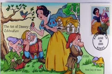 Lot #1577. View Larger | Rotate Hand-Painted First Day Cover by Collins, Disney w/ Snow White, 2005 VF