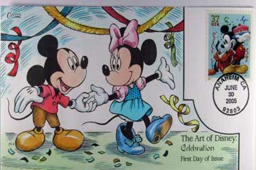 Lot #1578. View Larger | Rotate Hand-Painted First Day Cover by Collins, Disney w/ Mickey Mouse, 2005 VF