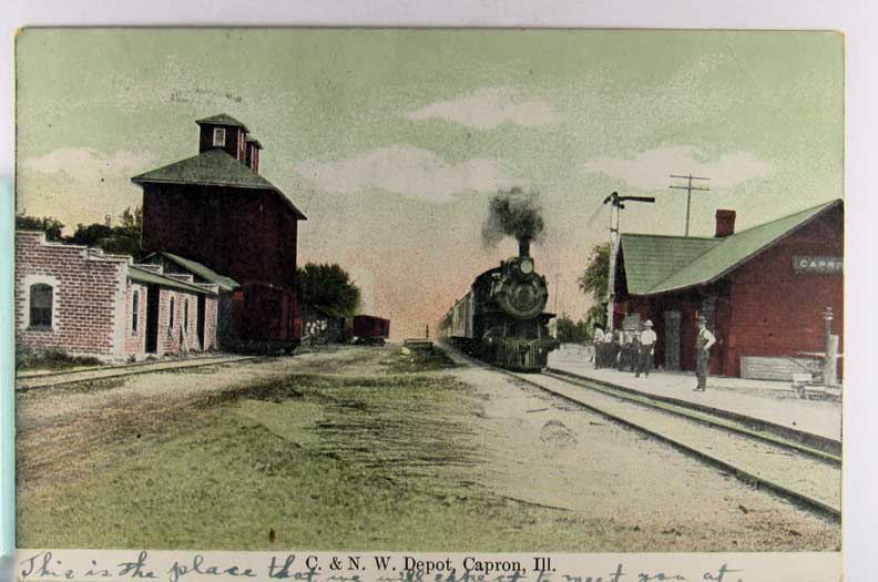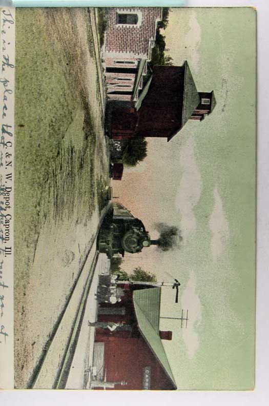 Lot #1462. View Larger | Rotate Depot, Capron, Illinois, Tinted Printed Photo, Used 1909 DB cor cr & m wof Near F-VF
