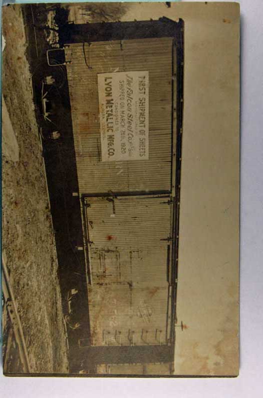 Lot #1471. View Larger | Rotate Train Car Adv. Lyon Metallic Mfg. Co., Aurora, Illinois, Real Photo w/ AZO P.C. back sts Near F-VF