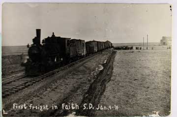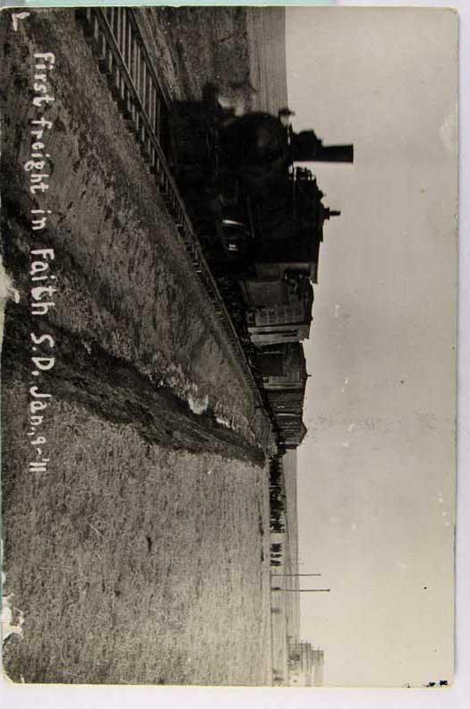 Lot #1431. View Larger | Rotate Train, Real Photo, “First Freight in Faith”, South Dakota, Used Same 1911 cor & edge wear Near F-VF