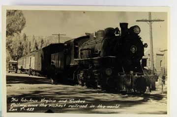 Lot #1434. View Larger | Rotate Train, Real Photo, “The Fabulous Virginia and Truckee Railway”, Used 1949 VF