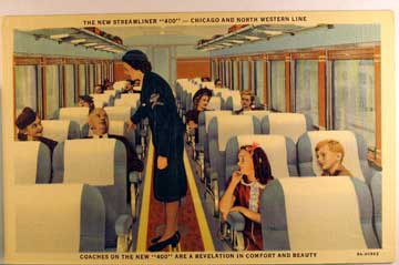 Lot #1443. View Larger | Rotate Linen Adv. Chicago and North Western Line, The New Streamliner 400, Interior VF