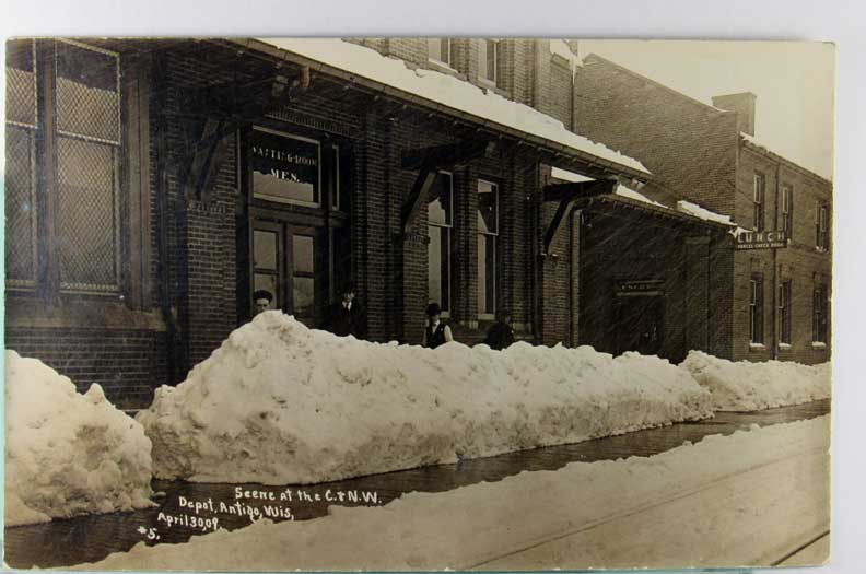 Lot #1416. View Larger | Rotate Train Depot, Real Photo, Antig0, Wisconsin, Used Same 1909 VF