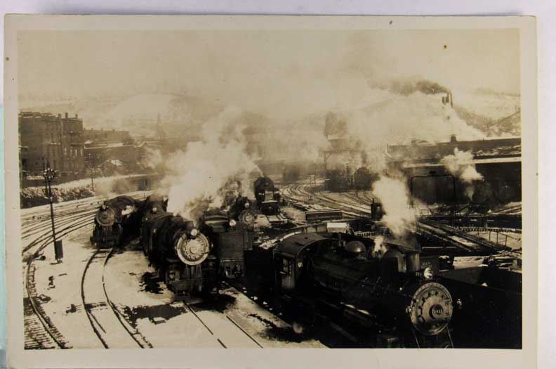 Lot #1435. View Larger | Rotate Train Yard w/ Many Engines, Real Photo w/ AZO P.C. back m cor wear Near VF