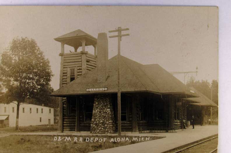 Lot #1407. View Larger | Rotate Depot, Aloha, Michigan, Real Photo, Used Same 1910 VF