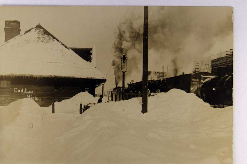 Lot #1408. View Larger | Rotate Depot, Used Cadillac, Michigan 1910, Real Photo, Very Snowy Scene VF