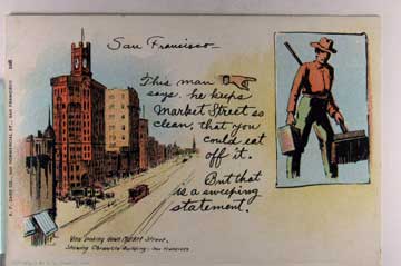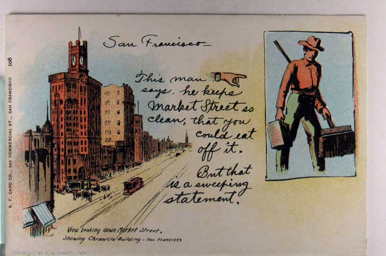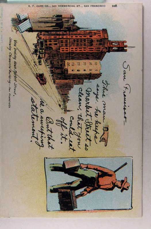 Lot #1518. View Larger | Rotate California, San Francisco, Comic, “Looking Down Market Street”, #108 UB m cor album marks Near VF