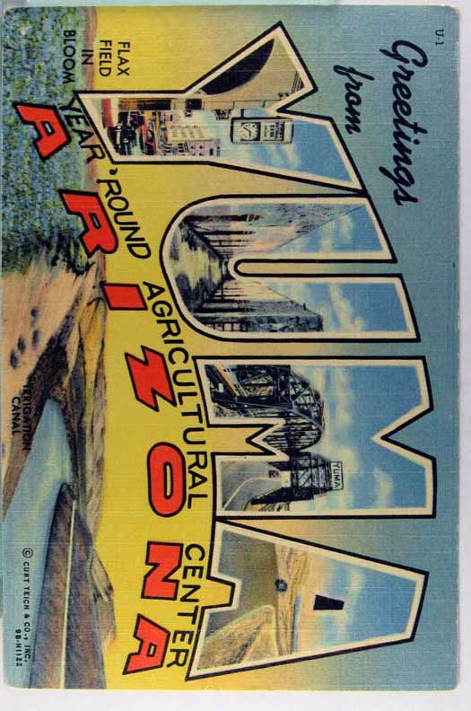 Lot #1345. View Larger | Rotate Arizona, Yuma, Larger Letter Linen, Curt Teich Pub. L VF