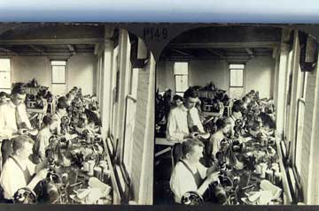 Lot #1518. View Larger | Rotate New York, Syracuse, “Stitching Shoes in Factory”, Real Photo Stereo View Card m cor wear F-VF