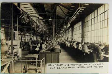 Lot #1526. View Larger | Rotate Indiana, Elkhart, C.G. Con Musical Instrument Factory, Cornet & Trumpet Mounting Dept., Real Photo w/ AZO P.C. back m cor wear F-VF