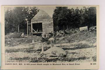 Lot #1491. View Larger | Rotate Maine, Casco Bay, Printed Photo, “400 lb Shark”. Used 1908 DB Near VF