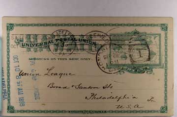 Lot #1520. View Larger | Rotate Hawaii, Two Cent Gov’t Postal Card, Used 1899 cor cr Near VF