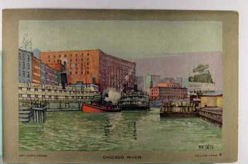 Lot #1467. View Larger | Rotate Illinois Chicago, Art. Lovers Ser., cpr Volland, “Chicago River” DB VF