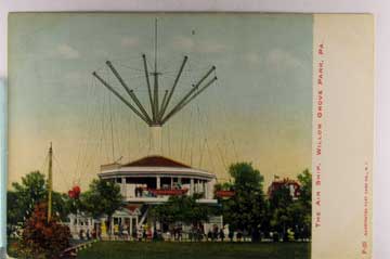 Lot #1551. View Larger | Rotate Pennsylvania, Willow Grove Park, “The Air Ship” Amusement Ride, Tinted Printed Photo DB m cor wear VF