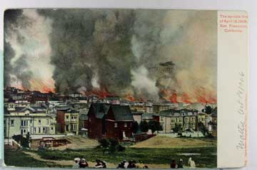 Lot #1361. View Larger | Rotate California, San Francisco, Tinted Printed Photo, “Terrible Fire.. 1906”, Used Same UB m pwof & wear Near F-VF