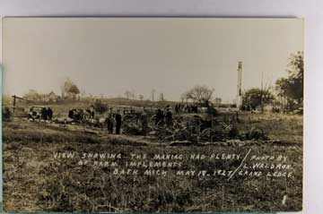 Lot #1415. View Larger | Rotate Michigan, Bath, Real Photo, School Explosion, “Maniac.. Farm Implements” VF