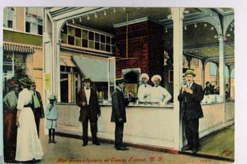 Lot #1458. View Larger | Rotate New York, Coney Island, “Hot Frankfurters”, Tinted Printed Photo, Used 1911 m cor wear F-VF