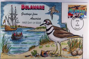 Lot #1519. View Larger | Rotate Delaware, Hand-Painted First Day Cover by Collins, 2002 VF