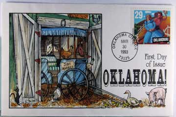 Lot #1549. View Larger | Rotate Oklahoma, Hand-Painted First Day Cover by Collins, 1993 VF