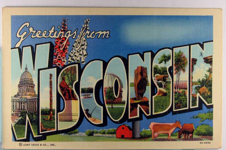 Lot #1539. View Larger | Rotate Wisconsin, Large Letter Linen, Curt Teich Pub. L VF
