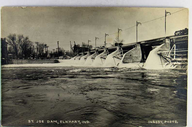 Lot #1389. View Larger | Rotate Indiana, Elkhart, “St. Joe Dam”, Real Photo w/AZO P.C. back m edge wear Near VF