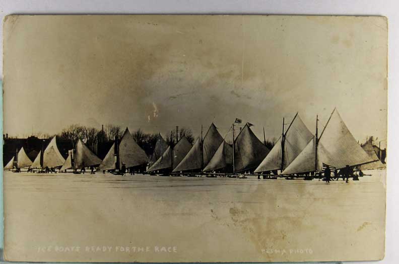 Lot #1439. View Larger | Rotate Michigan, Used St. Clair, Real Photo by Pesha, “Ice Boat Racing” cor crs F
