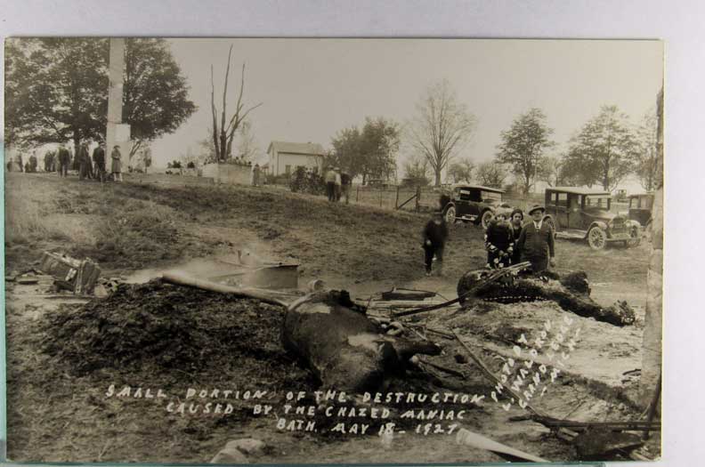 Lot #1417. View Larger | Rotate Michigan, Bath School Bombing, Real Photo, “Maniac Had Plenty of Farm Implements” VF