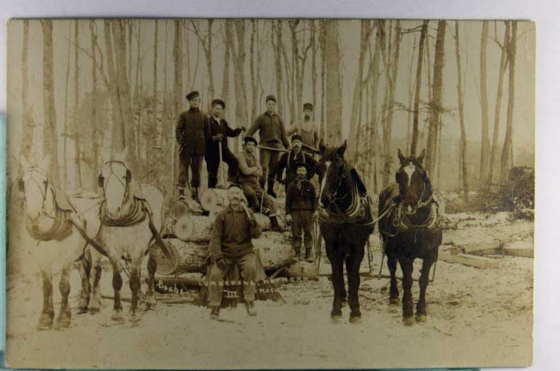 Lot #1444. View Larger | Rotate Michigan, “Lumbering Northern”, Real Photo by Beebe, Used VF