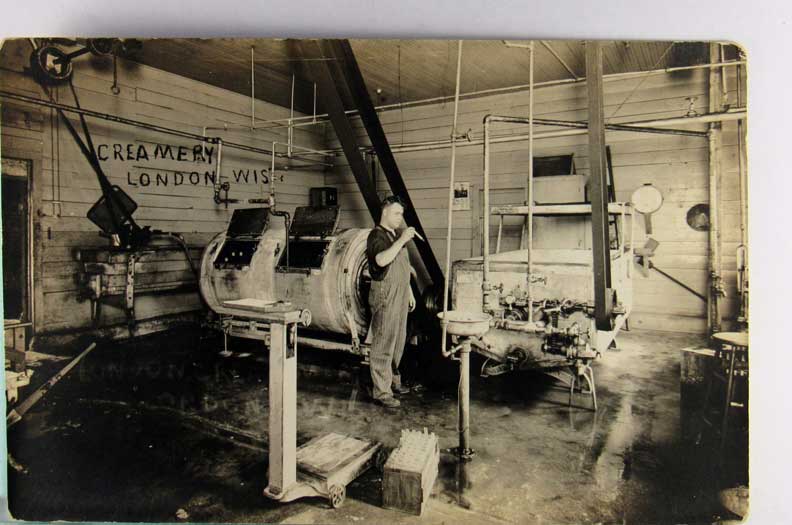 Lot #1488. View Larger | Rotate Wisconsin, London, “Creamery”, Real Photo w/ AZO P.C. back cor wear F-VF