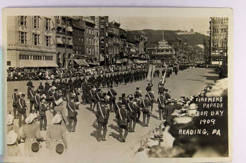 Lot #1477. View Larger | Rotate Pennsylvania, Reading, Firmen’s Labor Day Parade, Real Photo, Used 1910 m cor cr Near VF