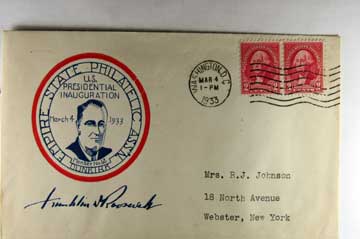 Lot #1055. View Larger | Rotate Franklin Roosevelt, March 4th, 1933, Inauguration Day Cover w/ Cachet VF