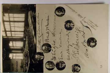 Lot #1588. View Larger | Rotate Real Photo of Conferenza di Locarno 1925 w/ Chamberlain & Mussolini, Reproduced Signatures Near VF