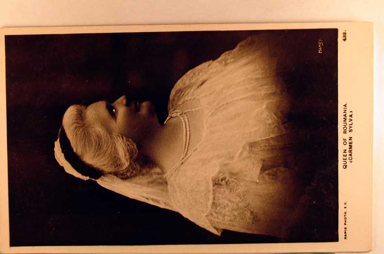 Lot #1590. View Larger | Rotate Romanian Royalty Real Photo, Queen Carmen Sylva, used in England 1907 DB F-VF