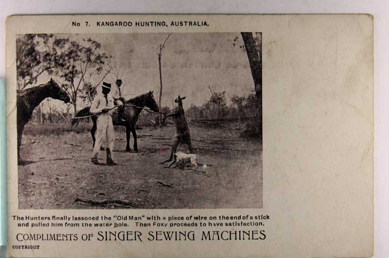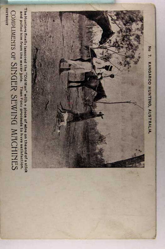 Lot #1562. View Larger | Rotate Australia, Kangaroo Hunting, Printed Photo, Adv. Singer Sewing Machines UB cor wear & cr F