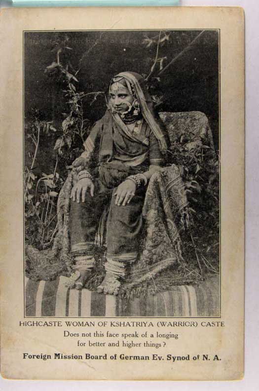Lot #1572. View Larger | Rotate India, “High Caste Woman of Kshatriya”, German Mission Board Pub., Printed Photo DB m crs F-VF