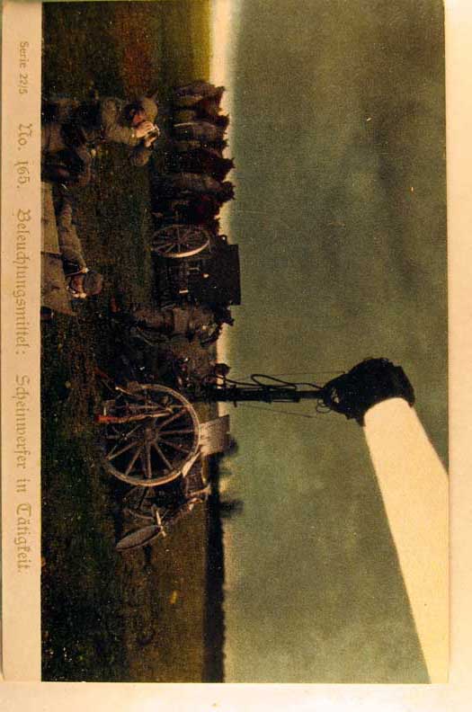 Lot #1131. View Larger | Rotate W.W. I, German Pub., Tinted Printed Photo Ser. 22/5 #165, “Beleuchtungsmittel”, w/ Spotlight DB VF