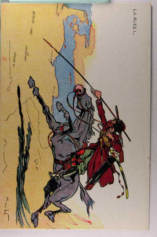 Lot #1122. View Larger | Rotate W.W. I, French Pub., Art. Sig. Koister, “La Ruee” DB trimmed