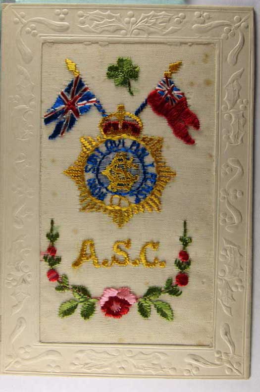 Lot #1118. View Larger | Rotate W.W. I, French Made Embroidered Silk w/ British Flags, “A.S.C” DB ver m toning VF