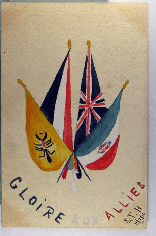 Lot #1120. View Larger | Rotate W.W. I, British Pub., Hand Painted, Dated 1916 DB VF