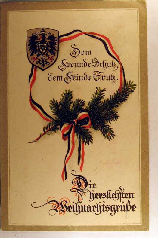 Lot #1133. View Larger | Rotate W.W. I German Patriotic w/ Christmas Greeting, used 1915 DB emb F-VF