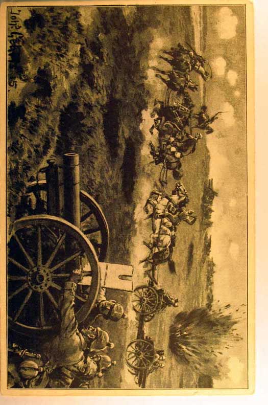 Lot #1129. View Larger | Rotate W.W. I German Feldpostkarte w/ Horse Drawn Artillery, Art. Sig. F-VF