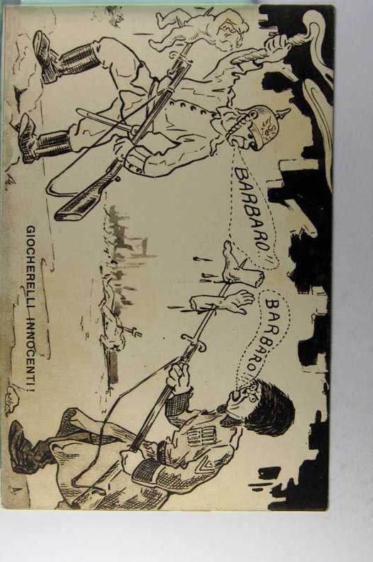 Lot #1162. View Larger | Rotate W.W. I, Italian Pub. w/ German & Russian Soldiers, “Barbaro!” DB VF