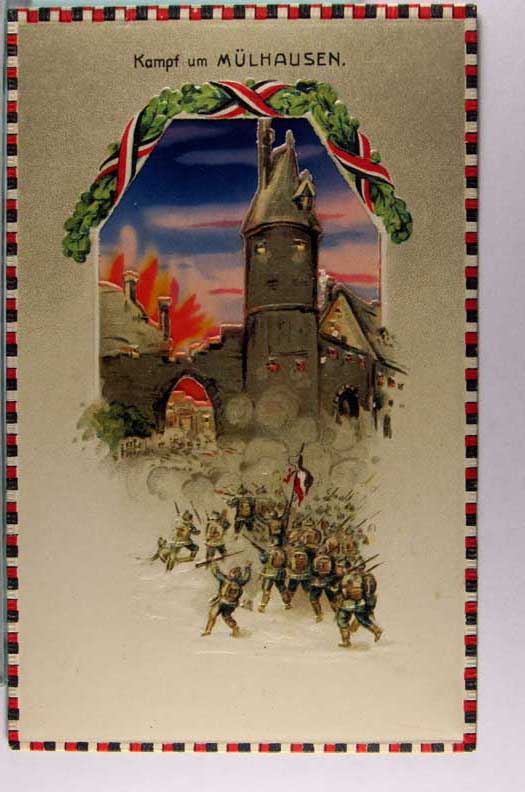 Lot #1143. View Larger | Rotate W.W. I, German Pub., Novelty Hold to the Light, Die-Cut, “Mulhausen” DB emb VF