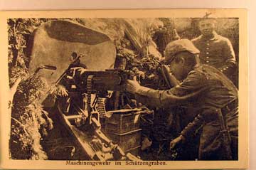 Lot #1130. View Larger | Rotate W.W. I German Printed photogravure, Machine Gun in Trench m cor cr F-VF