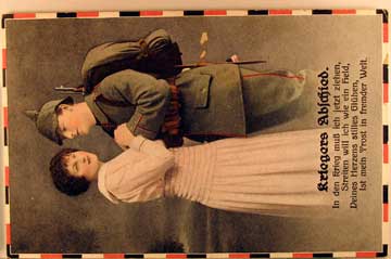 Lot #1157. View Larger | Rotate (3) W.W. I German pub. w/ Soldier, Woman & Horse, color, All used w/ Red 1915 Feldpost Cancels gen F-VF